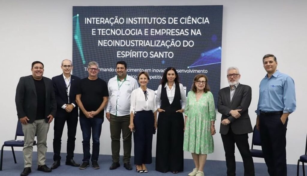 Participamos do evento “Institutos de Ciência e Tecnologia e Empresas na Neoindustrialização do Espírito Santo” no dia 27 de março na Cidade da Inovação, com o objetivo de fortalecer a colaboração entre as Instituições de Ciência e Tecnologia (ICTs) — como a Universidade Federal do Espírito Santo (UFES), o Instituto Federal do Espírito Santo (IFES), a Empresa Brasileira de Pesquisa Agropecuárioa (Embrapa) e o Instituto Capixaba de Pesquisa, Assistência Técnica e Extensão Rural (Incaper) — e o setor empresarial.